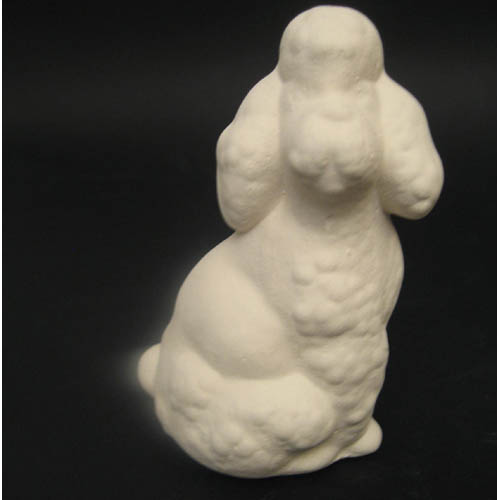 Réf. 07-016 caniche, figurine, L 6 x l 5,5 x h 10 ; biscuit de faïence fine (céramique brute)