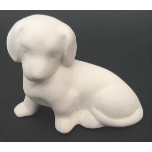 Réf. 07-022-1 teckel assis, figurine, L 6 x l 3,5 x h 4 ; biscuit de faïence fine (céramique brute)