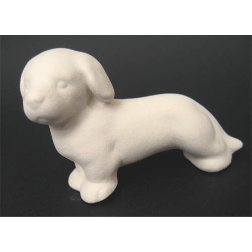 Réf. 07-027 chien à longue queue, figurine, L 7,5 x l 2,5 x h 8 ; biscuit de faïence fine (céramique brute)