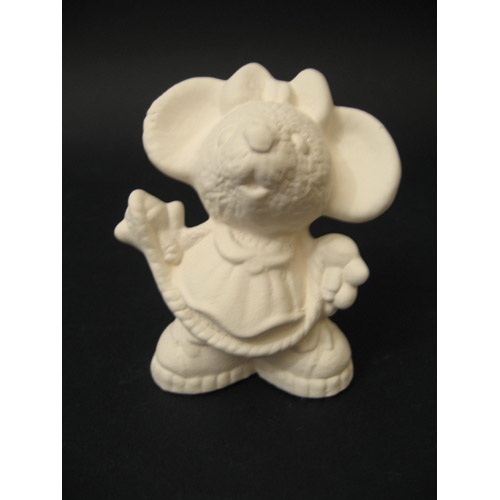 Réf. 11-125-3 souris poilue fille, figurine, L 7 x l 4 x h 8 ; biscuit de faïence fine (céramique brute)