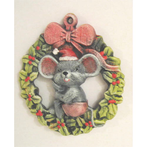 Réf. 13-009-1b couronne de plantes avec souris, figurine peinte à suspendre, L 7 x l 2 x h 7,5
