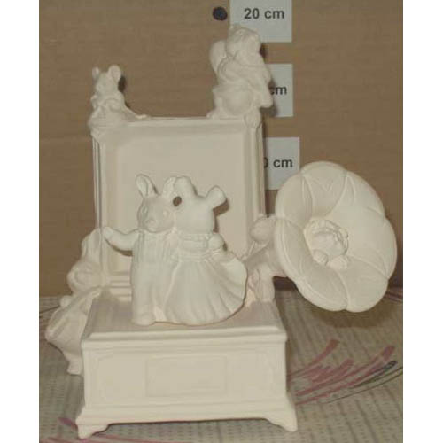 Réf. 11-099 phonographe avec souris, groupe de figurines, L 20 ; biscuit de faïence fine (céramique brute)