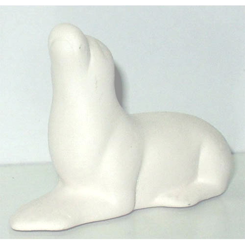 Réf. 11-005 petite otarie, figurine, h 6 ; biscuit de faïence fine (céramique brute à peindre ou à émailler)