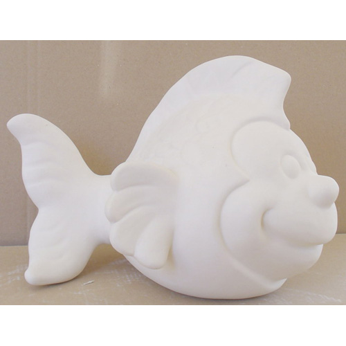 Réf. N°134-1 poisson, figurine, L 16 x l 8 x h 11,5 ; biscuit de faïence fine (céramique brute à peindre ou à émailler)