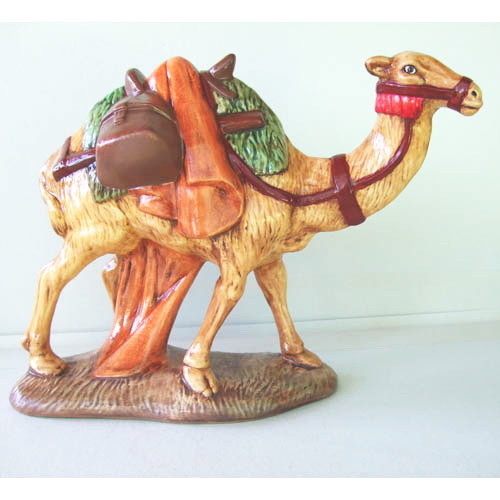 Réf. 01-074-2ev-av dromadaire, figurine peinte, L 28 x l 11 x h 23,5 (cf. la galerie des artistes peintres : Anne-Marie Lefaivre).