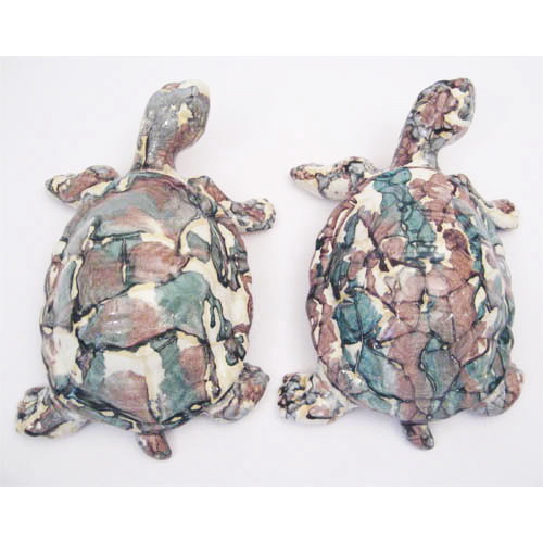 Réf. 11-029p tortue, figurines de faïence fine craquelée, L 23,5 x l 18 x h 9