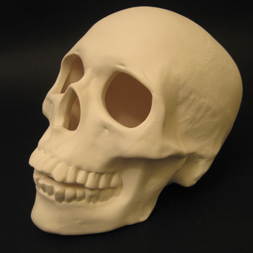 Réf. 13-069 grand crâne, figurine / photophore, L 26 x l 17 x h 20 ; biscuit de faïence fine (céramique brute à peindre ou à émailler)
