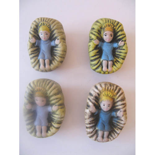 Réf. 01-102-2b la Sainte famille, groupe de trois figurines peintes (détail : enfant Jésus), L 2,8 x l 4 x 2,4