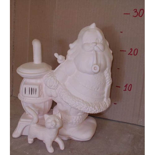 Réf. 01-018 Père Noël avec chat et poêle, groupe de figurines, h 26 ; biscuit de faïence fine (céramique brute à peindre ou à émailler)