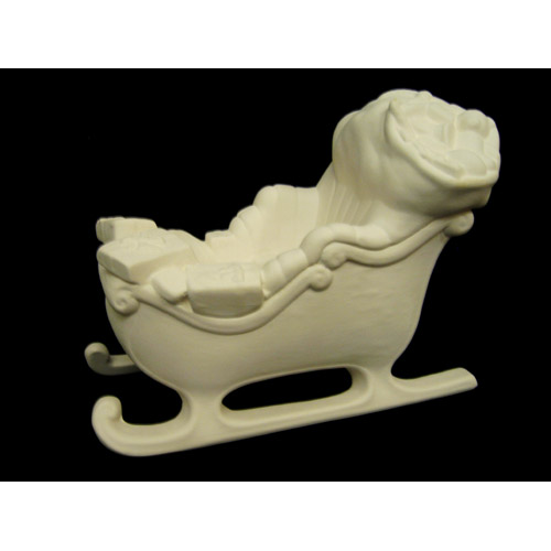 Réf. 01-025 Père Noël assis dans traîneau avec renne, groupe de trois figurines (le traîneau, 30 x 15 x 20) ; biscuit de faïence fine (céramique brute à peindre ou à émailler)
