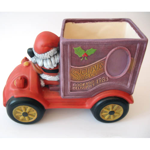 Réf. 01-089b Père Noël avec automobile, figurine / boîte / bonbonnière peinte (détail : dos, sans couvercle), L 30 x l 15 x h 29