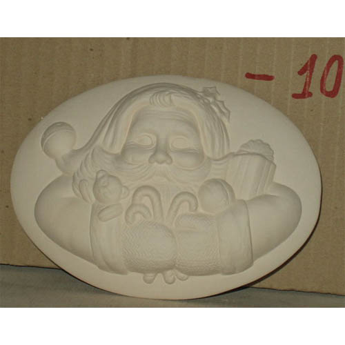 Réf. 01-107 Père Noël, plaquette dos plat / figurine à suspendre, L 15 x h 10 ; biscuit de faïence fine (céramique brute à peindre ou à émailler)