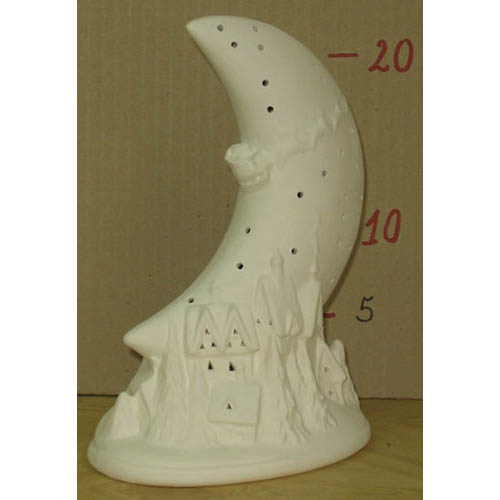 Réf. 01-116 Lune avec Père Noël, applique pour veilleuse / photophore (dos), L 15 x l 10 x h 22 ; biscuit de faïence fine (céramique brute à peindre ou à émailler)