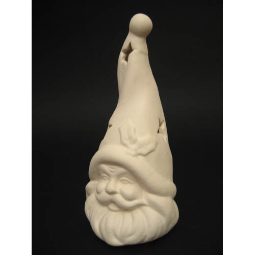 Réf. 01-151 tête de Père Noël, photophore, diam. 6,5 x h 14,5 ; biscuit de faïence fine (céramique brute à peindre ou à émailler)