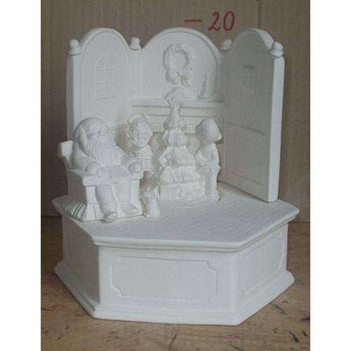 Réf. 01-110 Père Noël avec cadeaux, boîte, h 20 ; biscuit de faïence fine (céramique brute à peindre ou à émailler)