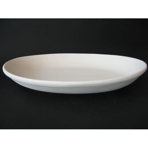 Réf. 13-056 plat en ellipse, L 38 x l 27,5 x h 6 ; biscuit de faïence fine (céramique brute à peindre ou à émailler)