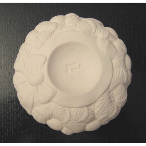 Réf. N°075 Noël, bougeoir, diam. 9 x h 3 ; biscuit de faïence fine (céramique brute à peindre ou à émailler)