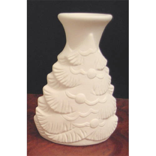 Réf. N°131 sapin, vase à fleurs séchées / bougeoir / porte-crayons, L 7 x l 4,5 x h 10 ; biscuit de faïence fine (céramique brute à peindre ou à émailler)