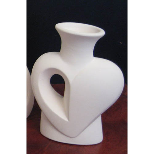 Réf. N°171 coeur, vase à fleurs séchées / bougeoir, L 8 x l 4 x h 10 ; biscuit de faïence fine (céramique brute à peindre ou à émailler)