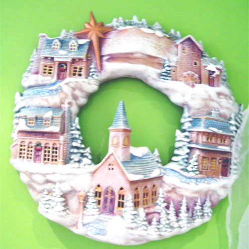 Réf. 01-001 ville en hiver, couronne murale, diam. 40 ; ; biscuit de faïence fine (céramique brute à peindre ou à émailler)