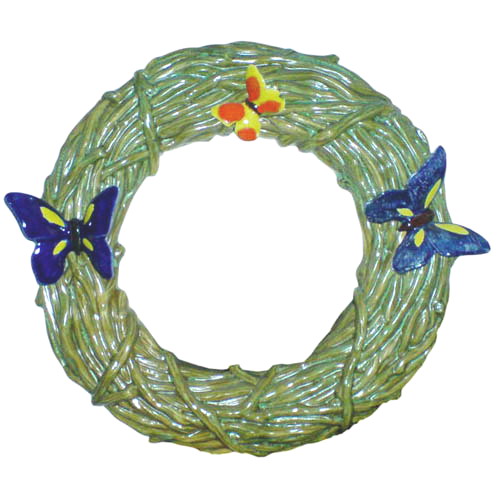 Réf. 14-052 grands anges, couronne murale, diam. 40 x l 7 ; biscuit de faïence fine (céramique brute à peindre ou à émailler)