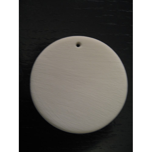 Réf. 09-100 grand cercle, figurine plate / pendentif, (peut devenir bouton), diam. 3,8 x 0,3 ; biscuit de faïence fine (céramique brute à peindre ou à émailler)