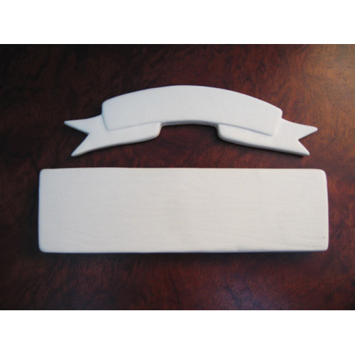 Réf. 13-029 plaquette pour porte de deux parties (détail : après la peinture, coller le ruban lisse sur le socle en relief), L 13 x l 1 x h 3,8 ; biscuit de faïence fine (céramique brute à peindre ou à émailler)