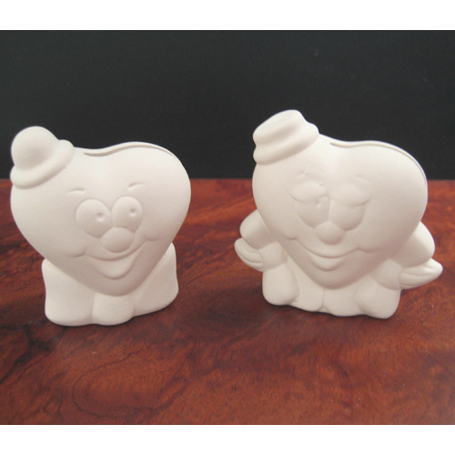 Réf. N°168-2 coeur garçon, porte-photo / porte-nom, L 5,5 x l 3,5 x h 6,5 ; biscuit de faïence fine (céramique brute à peindre ou à émailler)