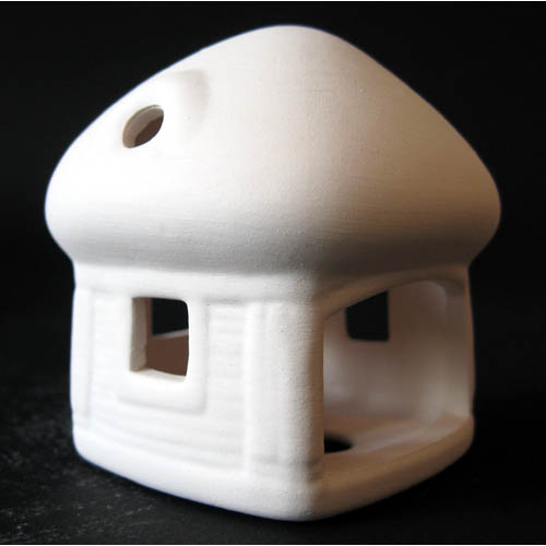 Réf. N°076 petite maison, figurine / photophore, L 6 x l 6 x h 7 ; biscuit de faïence fine (céramique brute à peindre ou à émailler)