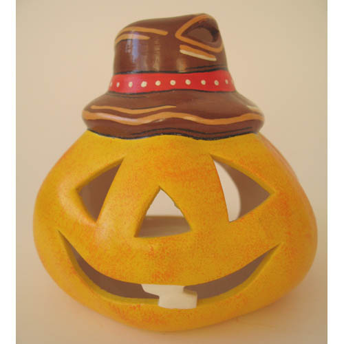 Réf. N°115a citrouille avec chapeau, figurine / photophore peint, L 11 x l 10 x h 10,5