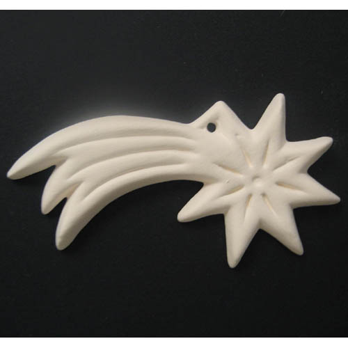 Réf. 01-143-1 étoile de Bethléem, figurine, dos plat, L 9,3 x l 5 x h 0,5 ; biscuit de faïence fine (céramique brute à peindre ou à émailler)