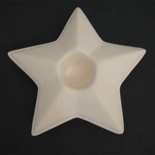 Réf. 13-007 étoile, bougeoir, L 10 x l 10 x h 3,5 ; biscuit de faïence fine (céramique brute à peindre ou à émailler)