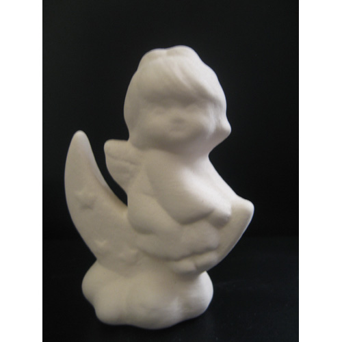 Réf. 14-026-3 ange sur la Lune, figurine, L 6 x l 3,5 x h 8,5 ; biscuit de faïence fine (céramique brute à peindre ou à émailler)