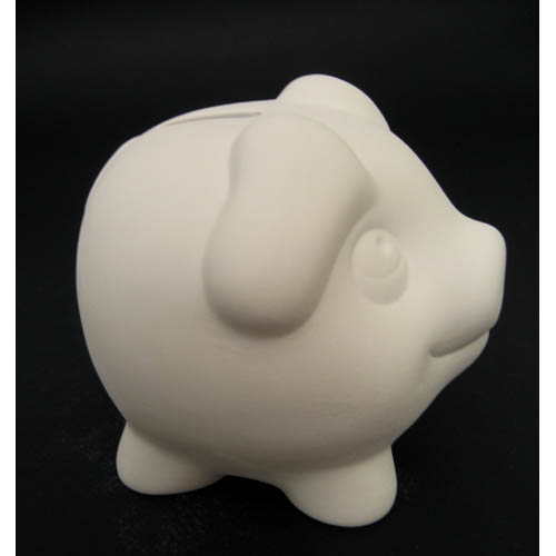 Réf. N°106-2 gros cochon, tirelire sans bouchon, L 12 x l 10 x h 11 ; biscuit de faïence fine (céramique brute à peindre ou à émailler)