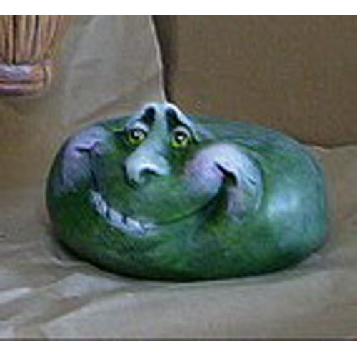 Réf. 02-030b pierre de troll souriant, figurine peinte, L 18 x l 15,5 x h 11