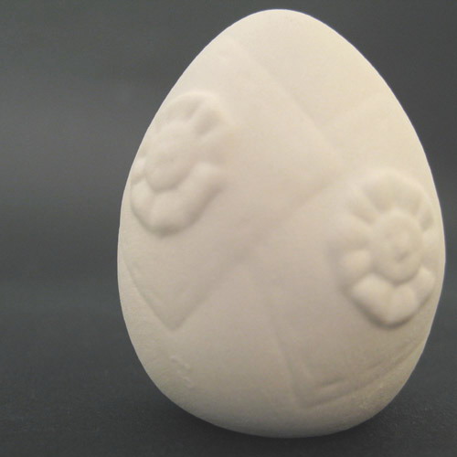 Réf. 09-013-5 oeuf avec grandes fleurs, figurine, diam. 5 x h 6 ; biscuit de faïence fine (céramique brute à peindre ou à émailler)