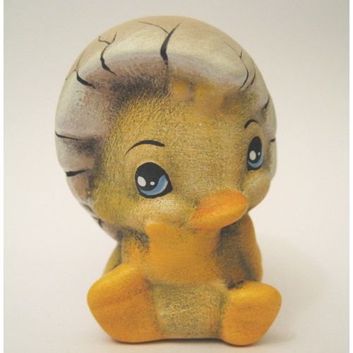 Réf. 09-009-2b1 caneton coiffé d'un oeuf, figurine peinte, L 4 x l 4,3 x h 6,5
