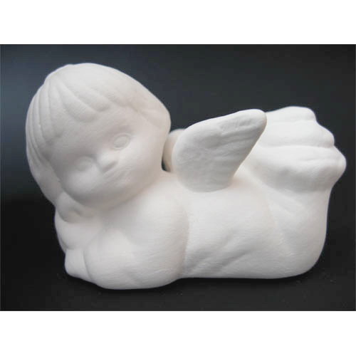 Réf. 14-030-3 ange allongé, figurine, L 8,5 x l 5,5 x h 5,5 ; biscuit de faïence fine (céramique brute à peindre ou à émailler)
