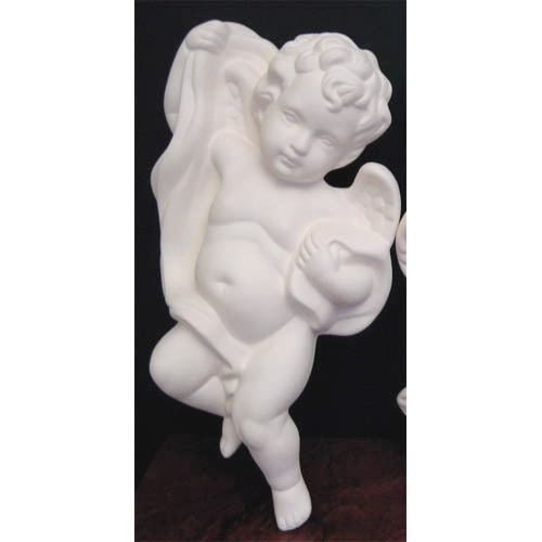 Réf. N°088 ange avec voile, sculpture murale, L 12 x l 6 x h 25 ; biscuit de faïence fine (céramique brute à peindre ou à émailler)