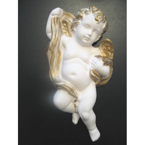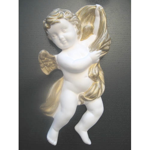 Réf. N°087a ange avec voile, sculpture murale peinte, L 12 x l 6 x h 25