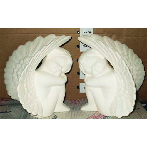 Réf. N°047-2 bisou d'ange, figurine de fille, L 9 x l 9 x h 20 ; biscuit de faïence fine (céramique brute à peindre ou à émailler)