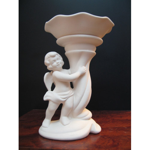 Réf. 14-023 ange, bougeoir (option 1), L 14 x l 13 x h 20 ; biscuit de faïence fine (céramique brute à peindre ou à émailler)
