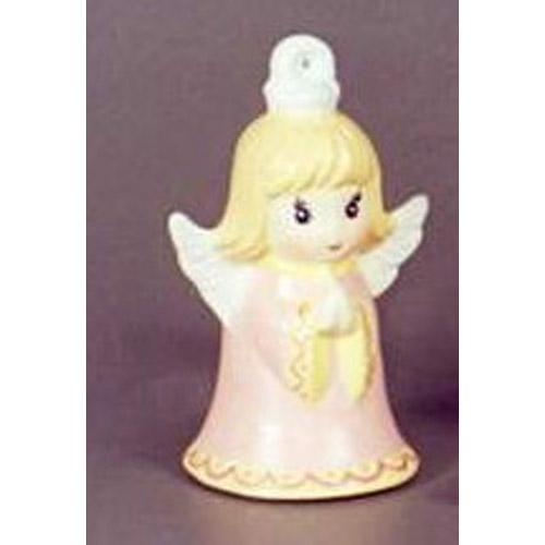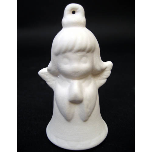 Réf. 14-024-3 petit ange avec clochette, figurine, L 3,5 x l 3 x h 5,8 ; biscuit de faïence fine (céramique brute à peindre ou à émailler)