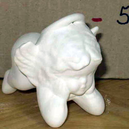 Réf. 14-028-2 ange, figurine (peut décorer une bougie), L 10 x l 7 x h 5 ; biscuit de faïence fine (céramique brute à peindre ou à émailler)