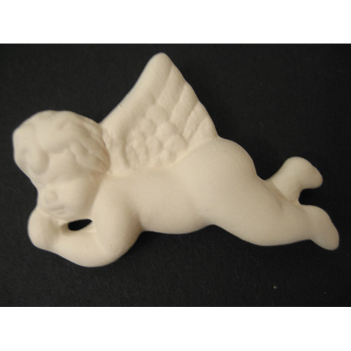 Réf. 14-087-1 ange, figurine, dos plat, L 5 x l 0,8 x h 3 ; biscuit de faïence fine (céramique brute à peindre ou à émailler)