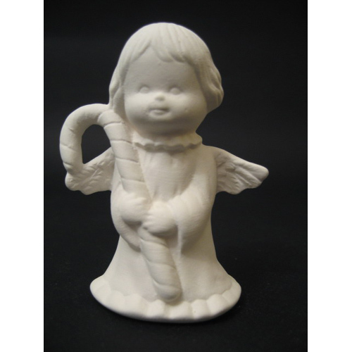 Réf. 14-091-1 ange avec crosse, figurine, L 6,4 x l 4,5 x h 8 ; biscuit de faïence fine (céramique brute à peindre ou à émailler)