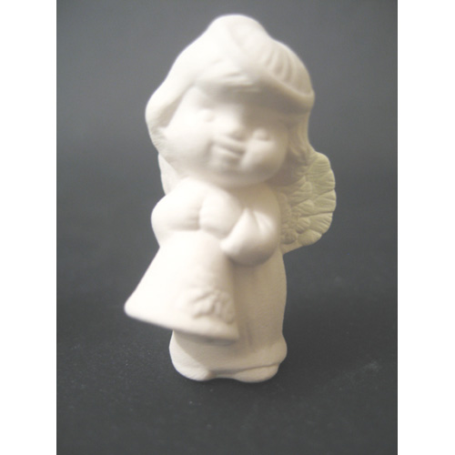 Réf. N°026 ange chantant, figurine, L 6 x l 5,5 x h 9 ; biscuit de faïence fine (céramique brute à peindre ou à émailler)