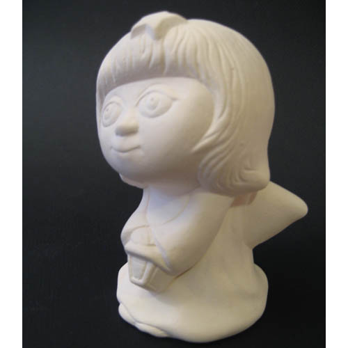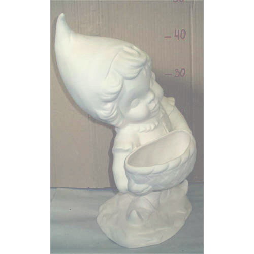 Réf. 10-083 naine / lutine des univers des elfes, figurine / cache-pot, h 50 ; biscuit de faïence fine (céramique brute à peindre ou à émailler)