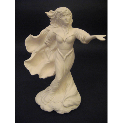 Réf. 15-036 sorcière avec crânes, figurine, L 12 x h 53 ; biscuit de faïence fine (céramique brute à peindre ou à émailler)