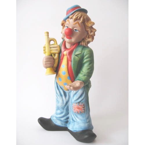 Réf. 16-003b clown avec trompette, figurine peinte, L 20 x l 13 x h 38